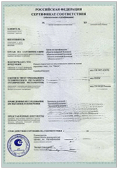 -각종 화기 및 관련 기기(냉장고, 전선류, 건축자재 등) 및 건물이 화재 발생의 원인으로부터 안전장치가 되어 있거나, 안전하다는 것을 증명하는 인증서로 2009.5.1 연방 DECREE NO.123-FZ "ON FIRE SAFETY"에 근거하여 발급
