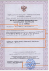 -러시아연방 보건 위생국에서 발행하는 인증서이며, 사람이 직접 섭취하거나 접촉하는 제품에 대해 인체에 무해하다는 것을 증명하는 인증서이며, 2010.06.18 CU COMMISSION에서 공표한 DECREE NO.299에 따라 해당 품목에 대해 국가 위생 등록증을 발급.