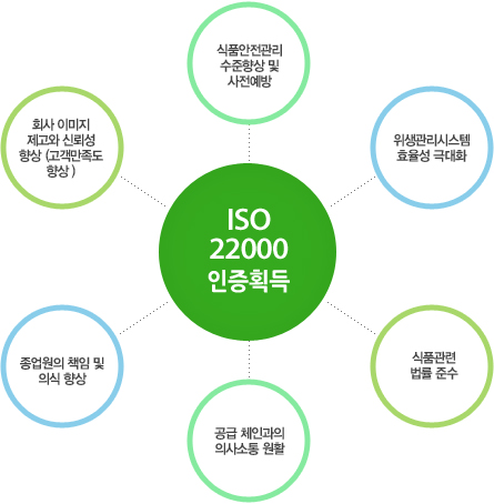 - 통합화한 ISO 22000 인증을 통한 비용 및 행정적 낭비요소의 감소