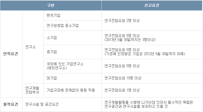 • 2. 기업부설연구소 자격요건