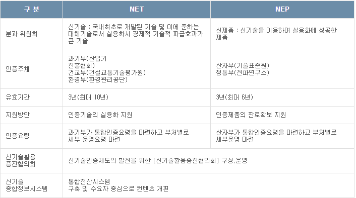 * NET기술 적용 제품에 대한 신속인증 : NET, NEP 제도의 연계를 위해 NET 인증기술을 실용화하여 NEP신청을 하는 경우, NET 평가시 확인한 요소에 대해서는 평가를 면제하고 심사기간도 단축